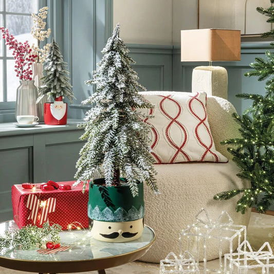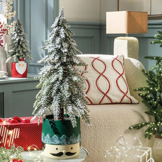 Alberello di Natale Innevato con Vaso Babbo Natale Rosso