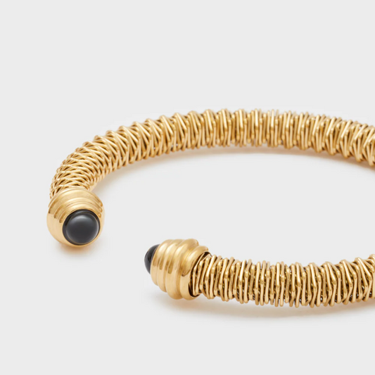 Bracciale Rigido Aperto con Pietre Nere - Nalì