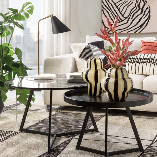 Set 2 Tavolini Tondi Bassi colore Nero con piano in legno