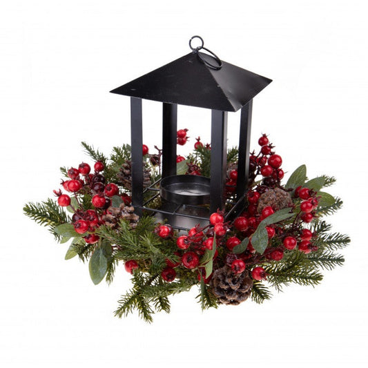 Lanterna Portacandele Pigne e Bacche in Metallo - Brandani