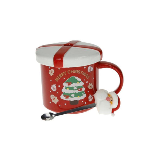 Tazza Mug Merry Christmas Rossa con Tappo e Cucchiaino