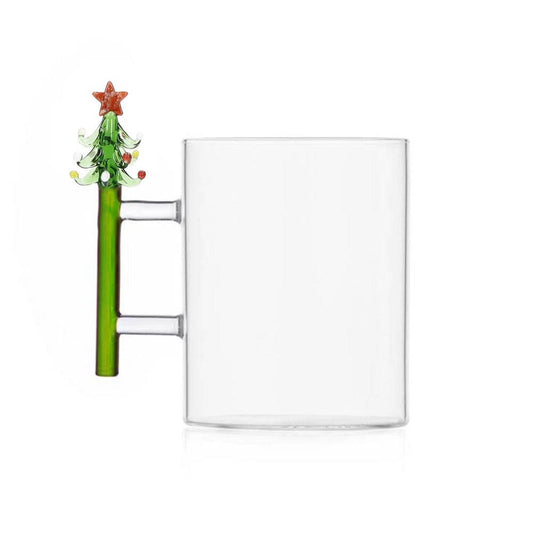 Set 2 Tazze Mug in Vetro con Manico Decorato "W il Natale"