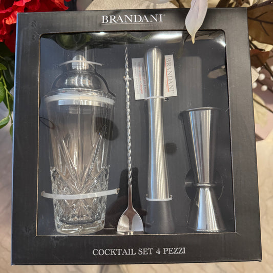 Cocktail Set 4pz con Shaker in Vetro e Accessori Inox