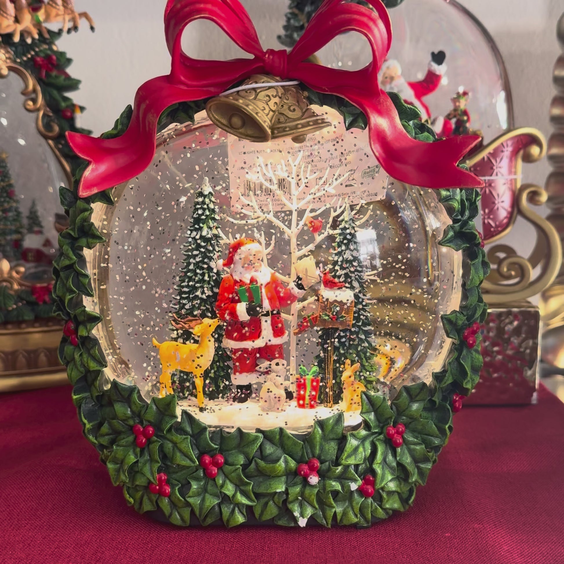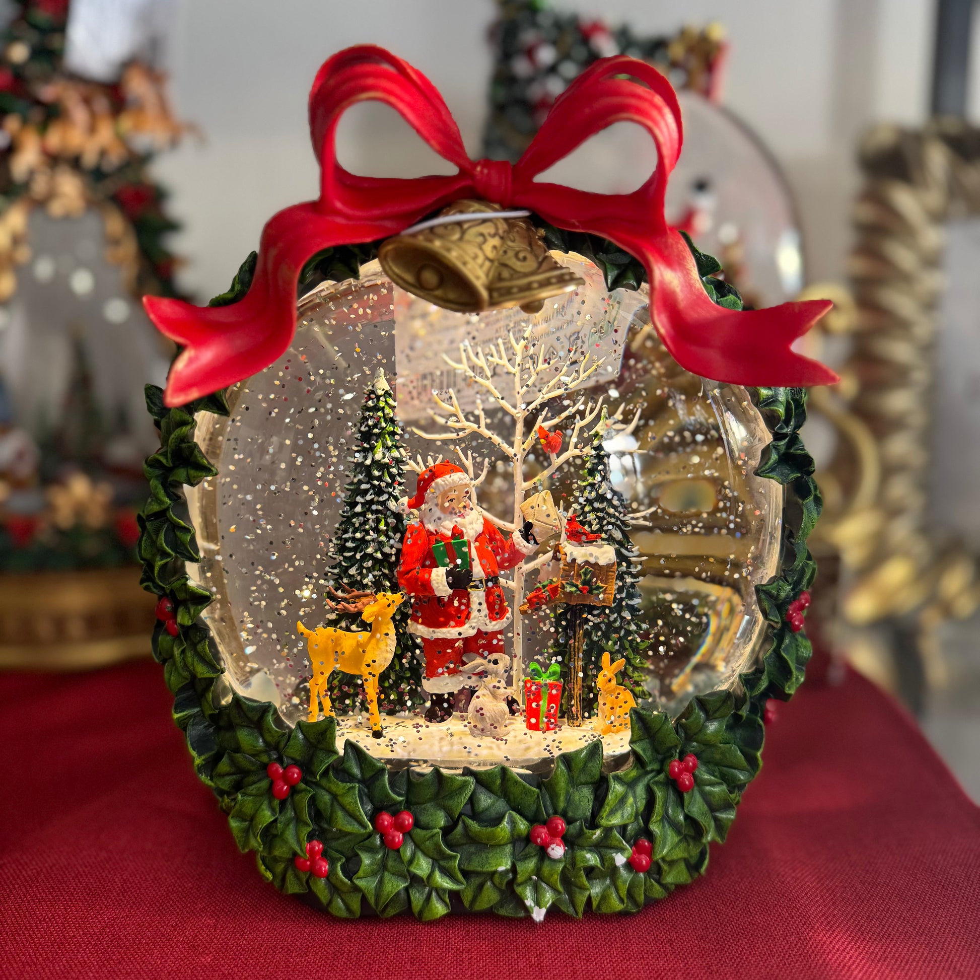 Esaltate lo spirito natalizio con questo Decoro Boule de Neige "Ghirlanda con Paesaggio Innevato" di EDG-Enzo De Gasperi. Questo elegante soprammobile in Resina dipinta a mano e Vetro rappresenta una Ghirlanda di Natale con all’interno un Paesaggio Natalizio che, con un semplice interruttore, crea un incantevole scenario innevato in movimento al suo interno, con Musica e Luci, o solo Luci.