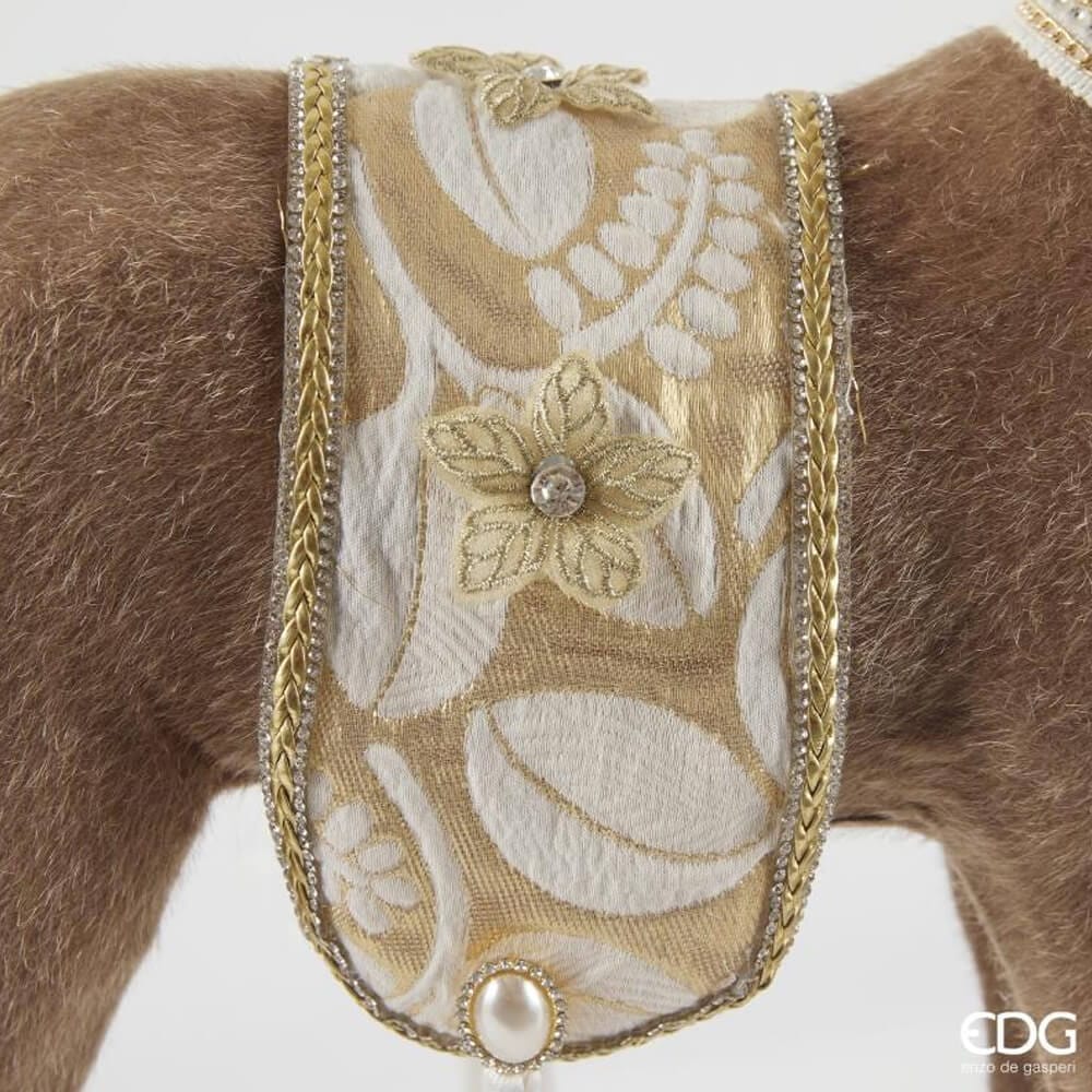 Porta la magia del Natale nella tua casa con questo elegante Cervo Vellutato firmato EDG-Enzo De Gasperi. Realizzato in Poliresina con finitura vellutata, corna dorate e bardatura ricamata in oro con dettagli gioiello e perla.