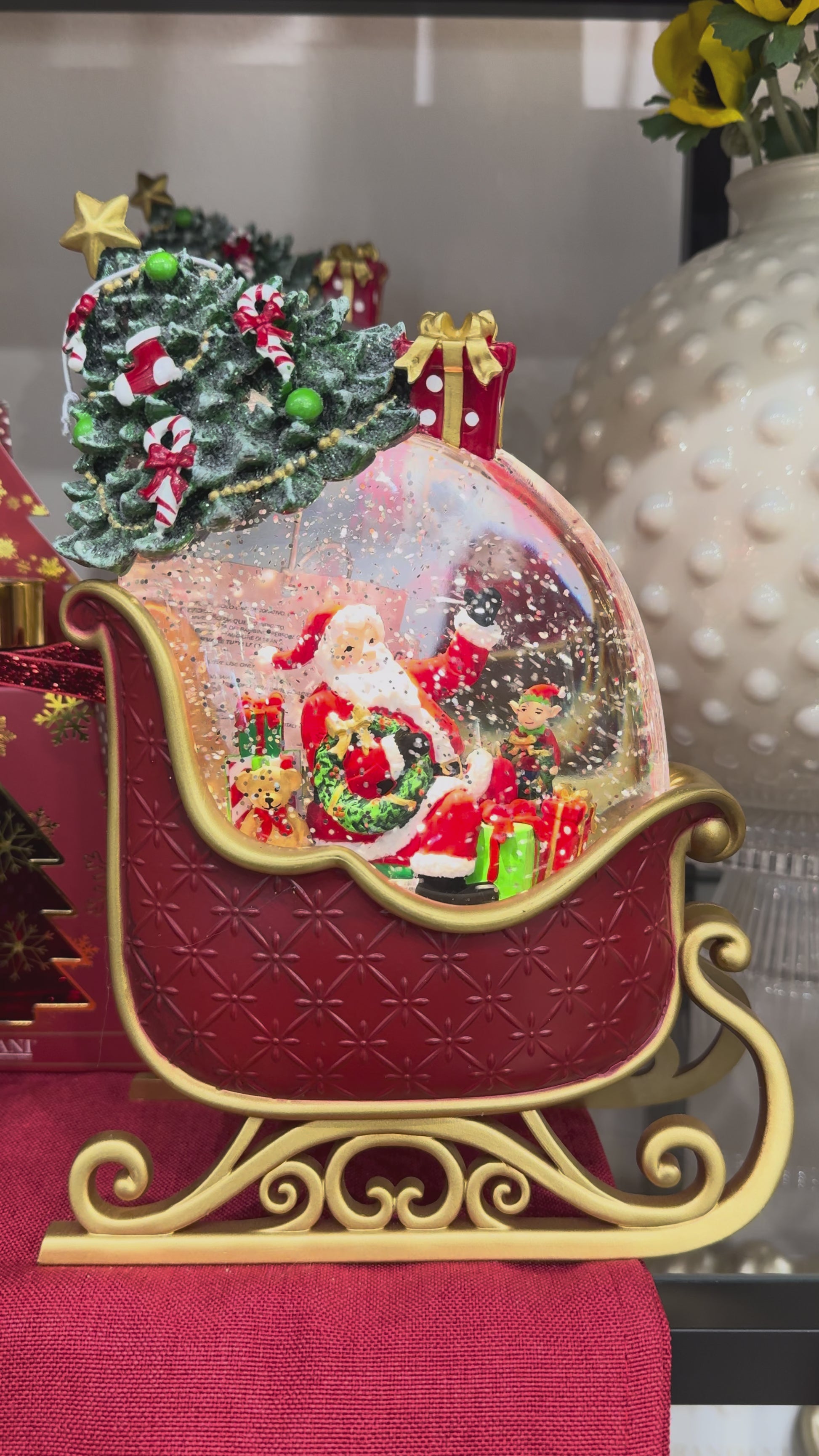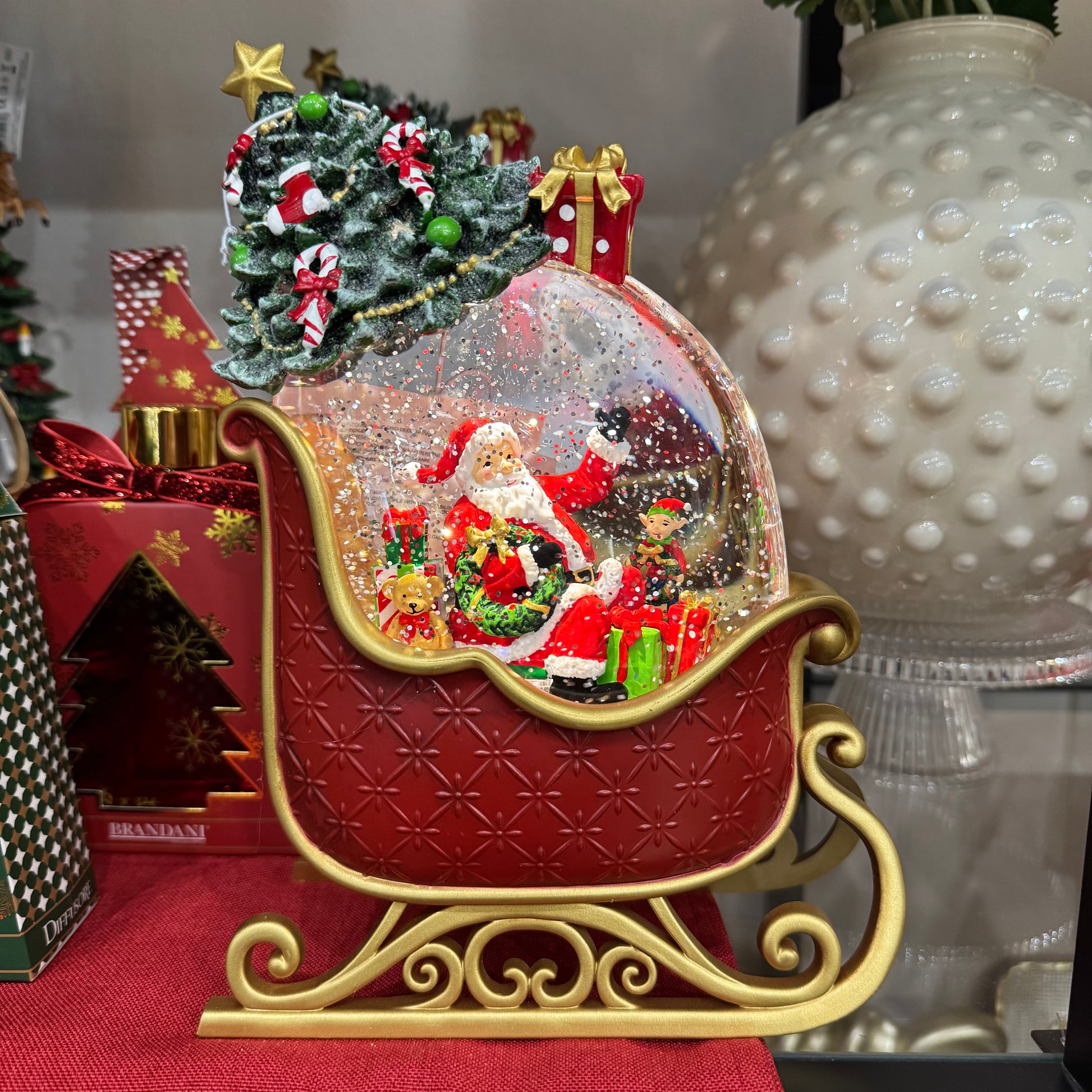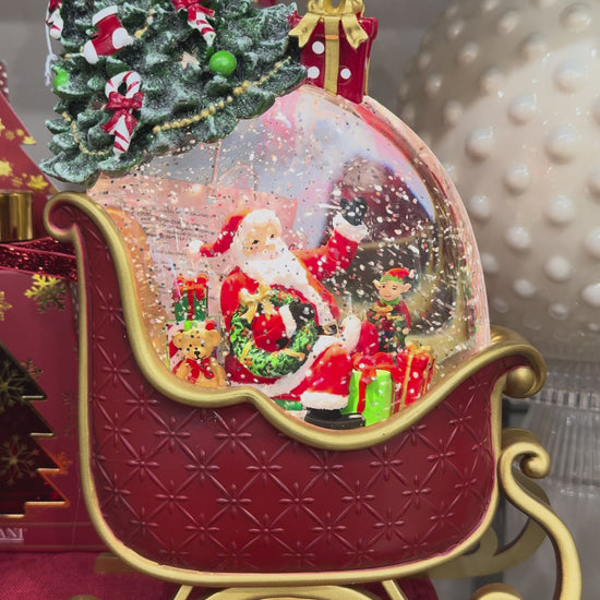 Esaltate lo spirito natalizio con questo Decoro Boule de Neige "Slitta con Paesaggio Innevato" di EDG-Enzo De Gasperi. Questo elegante soprammobile in Resina dipinta a mano e Vetro rappresenta una Slitta Natalizia con all’interno un Paesaggio Natalizio che, con un semplice interruttore, crea un incantevole scenario innevato in movimento al suo interno, con Musica e Luci. Possibilità di escludere la musica lasciando solo le luci.