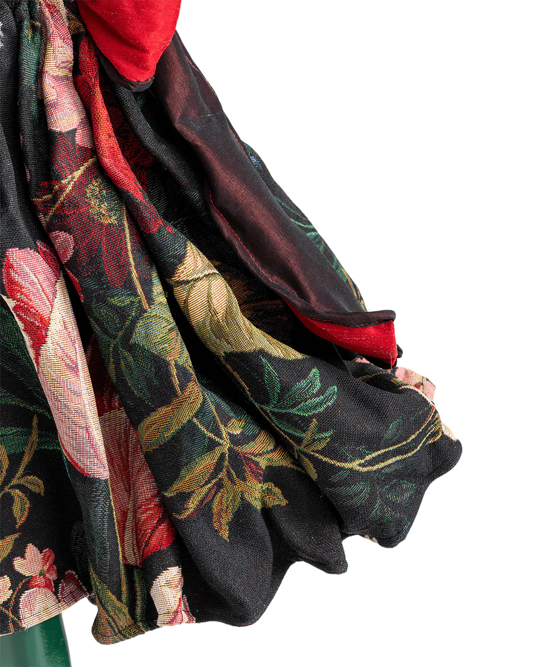Realizzate interamente a mano: hanno la struttura in legno e gli abiti sono ottenuti dal riciclo di tessuti inamidati per creare l'effetto del vento Meltemi, che quando soffia alza le gonne delle donne Greche. Proprio perché inamidato l'abito rimane sempre inalterato nella posizione.