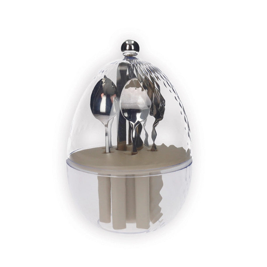 Perfetto per tenere sistemate le posate da usare ogni giorno, questo portaposate a forma di Uovo Trasparente custodisce ed offre un colpo d'occhio unico: non metterai mai più le tue posate chiuse in un cassetto!