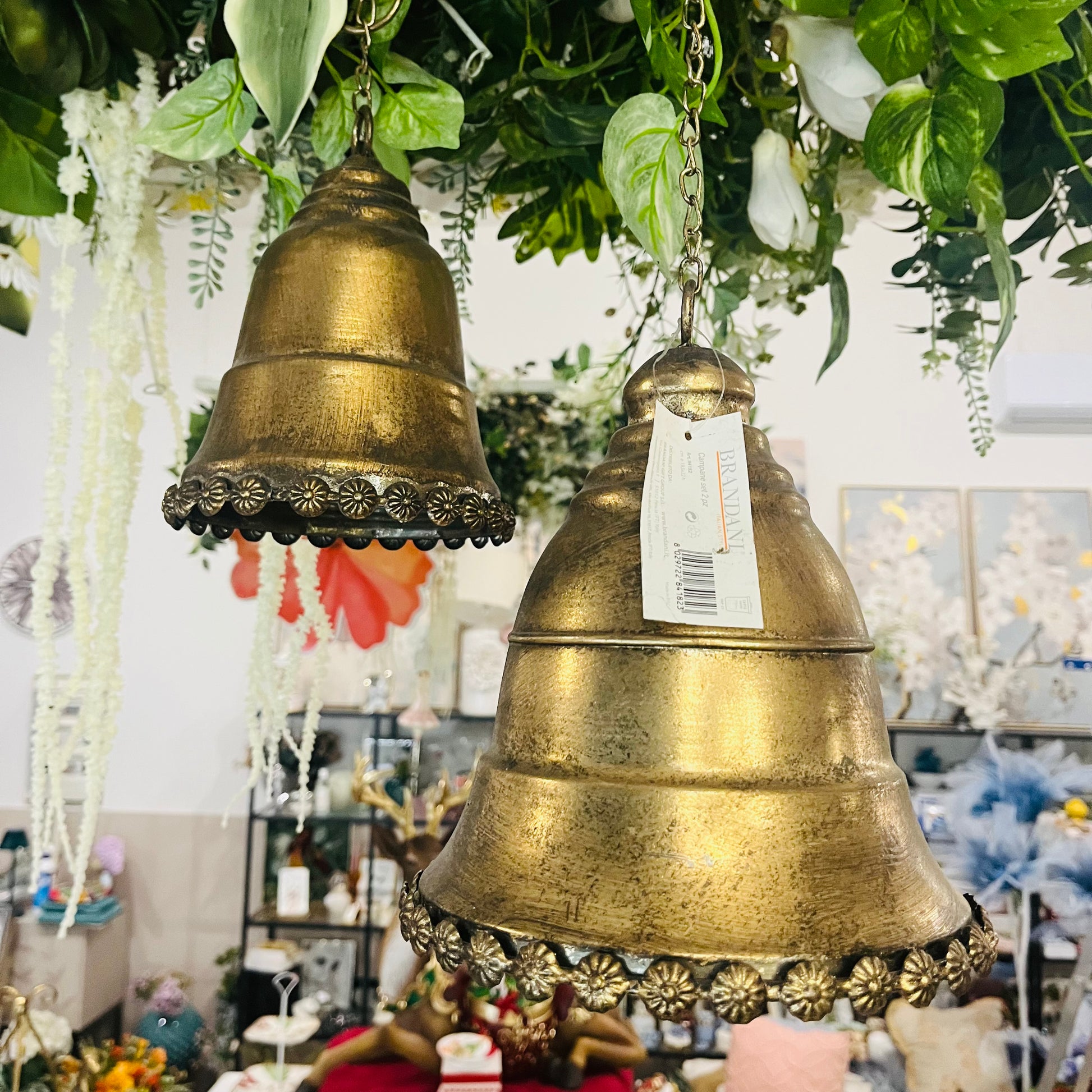 Set 2 Campane Decorative in Metallo color Oro Antico, da appendere.