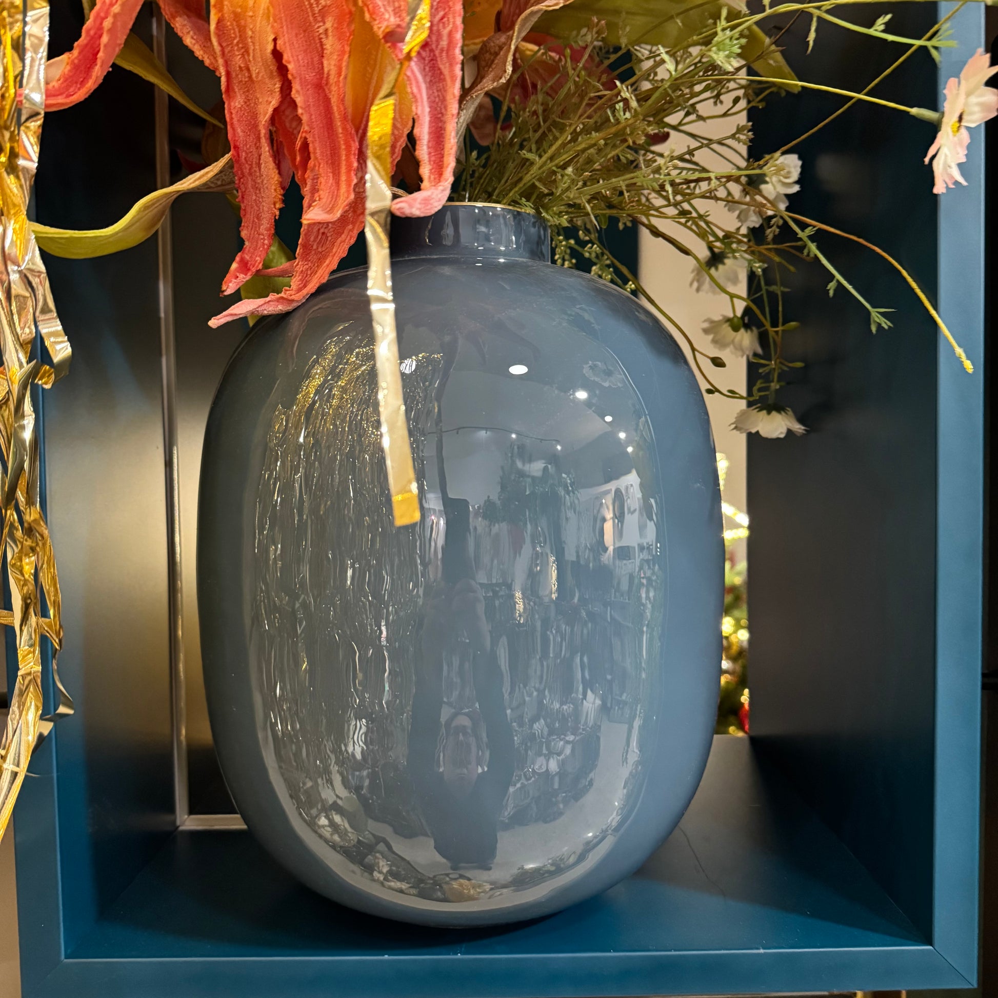 Vaso Ovale in Metallo Smaltato Light Blue - H 32cm