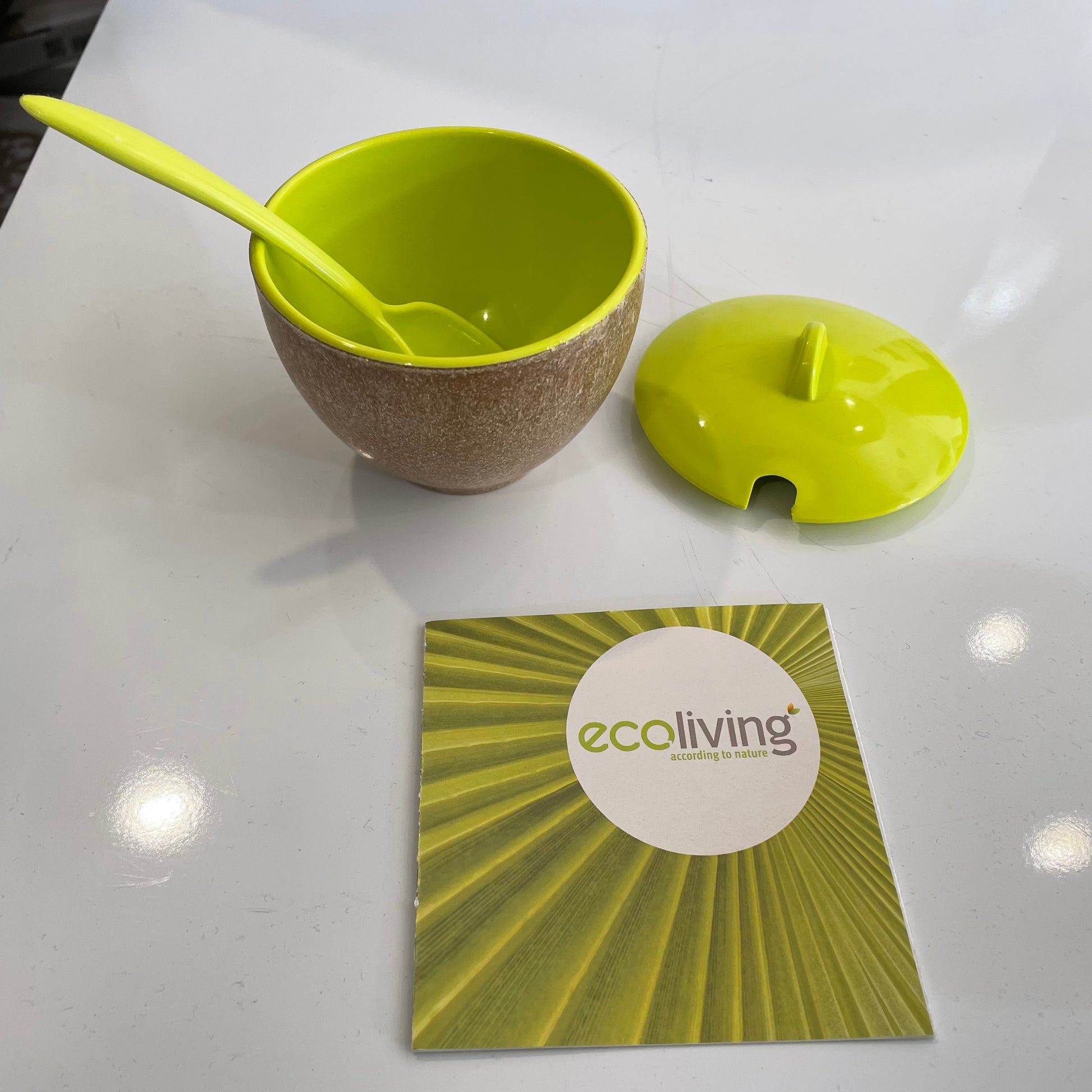 Pratica Zuccheriera, ideale per arricchire con eleganza e modernità la vostra tavola. Esternamente è realizzata con un materiale innovativo derivato dalla farina di legno vergine (e non da scarti o precedenti lavorazioni, quindi privo di collanti e verniciature), mentre l’interno è ricoperto in polipropilene, idoneo al contatto diretto con gli alimenti. Il coperchio e il cucchiaino, entrambi realizzati in acrilico colorato (3 colori).